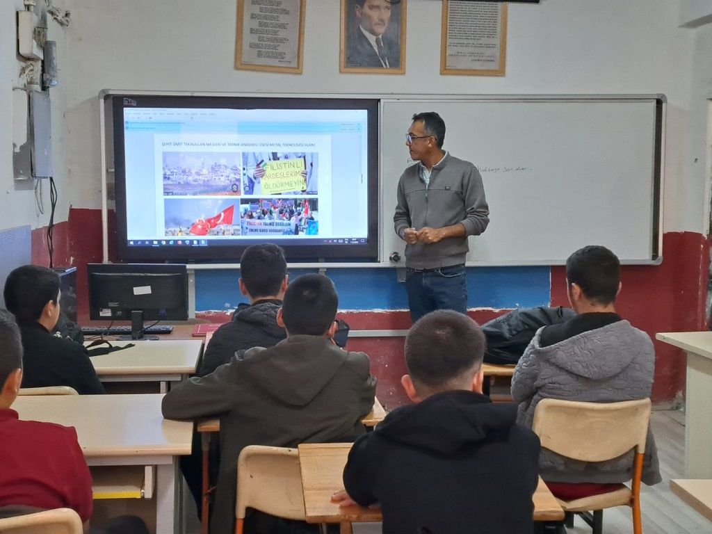 Bugün 3. ders saatinde tüm okulda eş zamanlı olarak Filistin konulu farkındalık etkinliği düzenlendi.